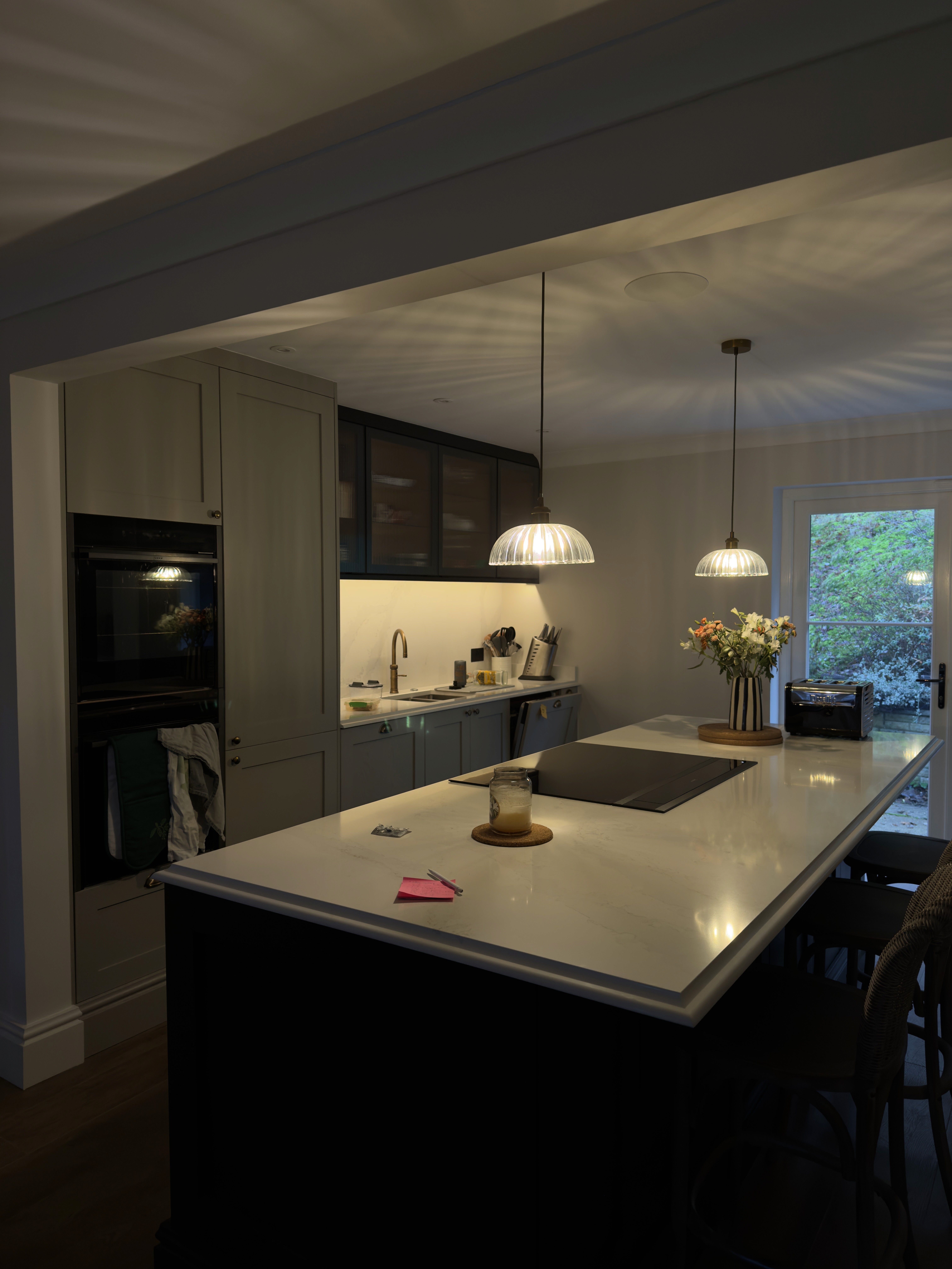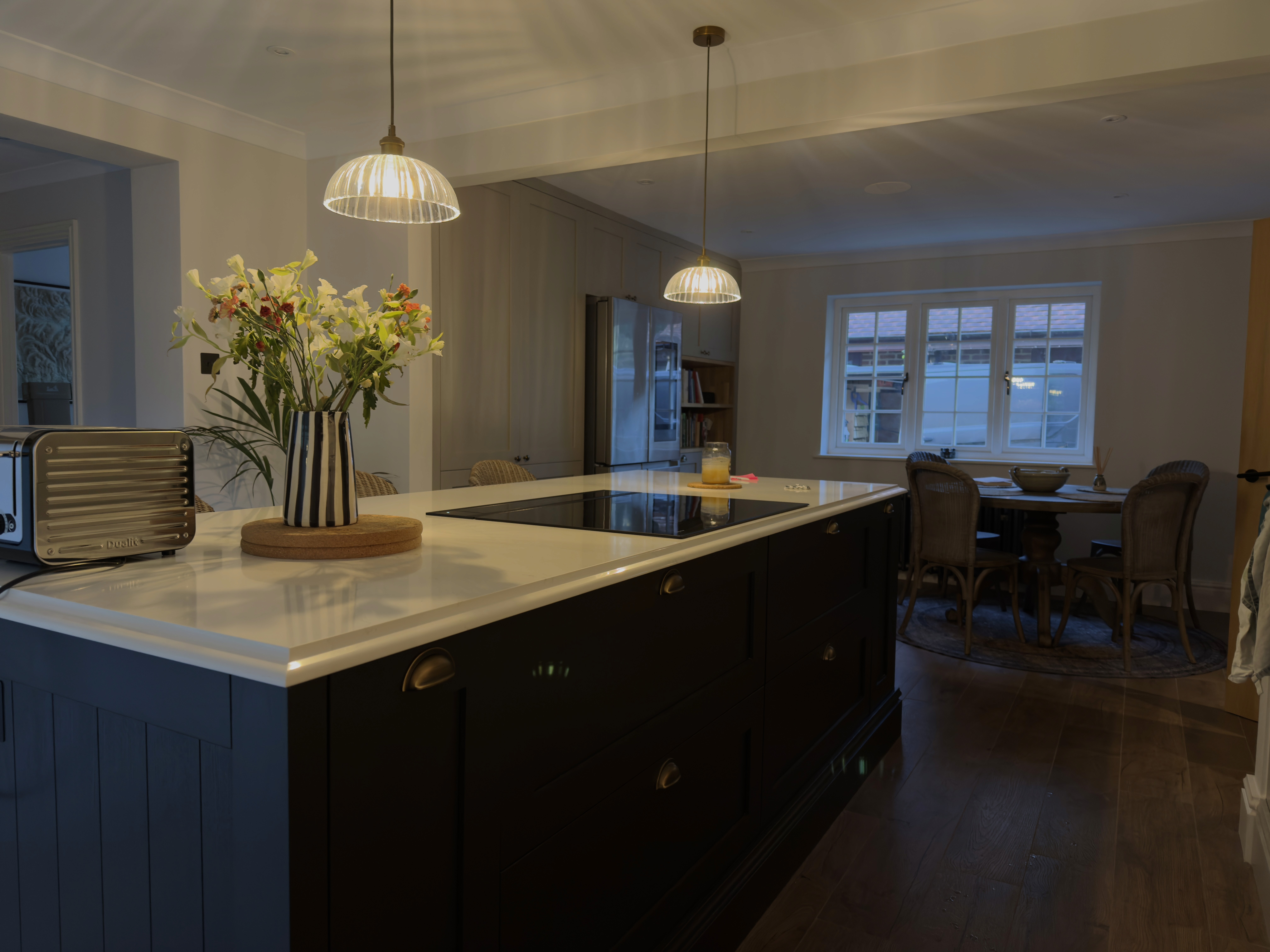 This project was a massive transformation that we are incredibly proud of. The brief from Disha was to create a timeless, traditional space that felt high-end but functional for family life. We managed the entire renovation from start to finish, fitting a bespoke kitchen, utility room, and a dedicated boot room. The centerpiece is undoubtedly that massive contrasting island—built for hosting. We also integrated glass-fronted cabinetry with warm internal lighting to give the room that cozy, evening atmosphere. From the electrical layout to the tiling and final joinery, my team handled every element in-house. A fantastic project to work on with a brilliant result.